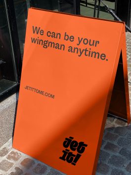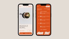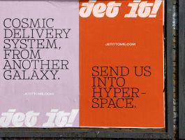 Jet it! Is a delivery app focused on home food take-out delivery. We wanted to stand out from the competition by using a fun, quirky and bold visual language, which is easily spotted on the road, and online. We came up with an interpretation on the Jet idea to take inspiration from Retrofuturism, to make it feel like a vintage collectable, but still fresh, fun and energetic, creating a custom logotype & brand mark, along with a range of illustrations & icons.